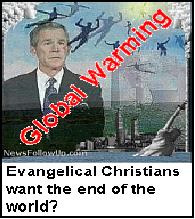 Do Evangelical Christians want the end of the world... global warming is comfort? | |