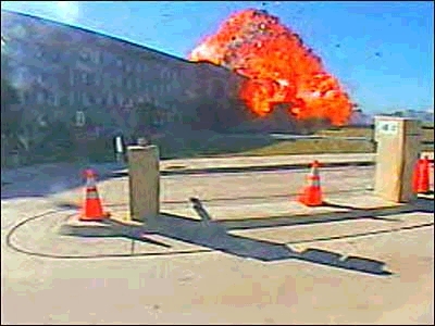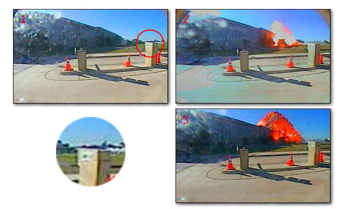 • It's virtually impossible that a Pentagon surveillance system could have missed photographing a large passenger airliner only a few hundred feet from  its cameras.  The surveillance images given to CNN are a comical amateurish doctoring of evidence,  The tapes do show what appears to be a tail structure and exhaust from a small jet or missile.  The American Society of Civil Engineers identifies these structures as indications of the attack aircraft